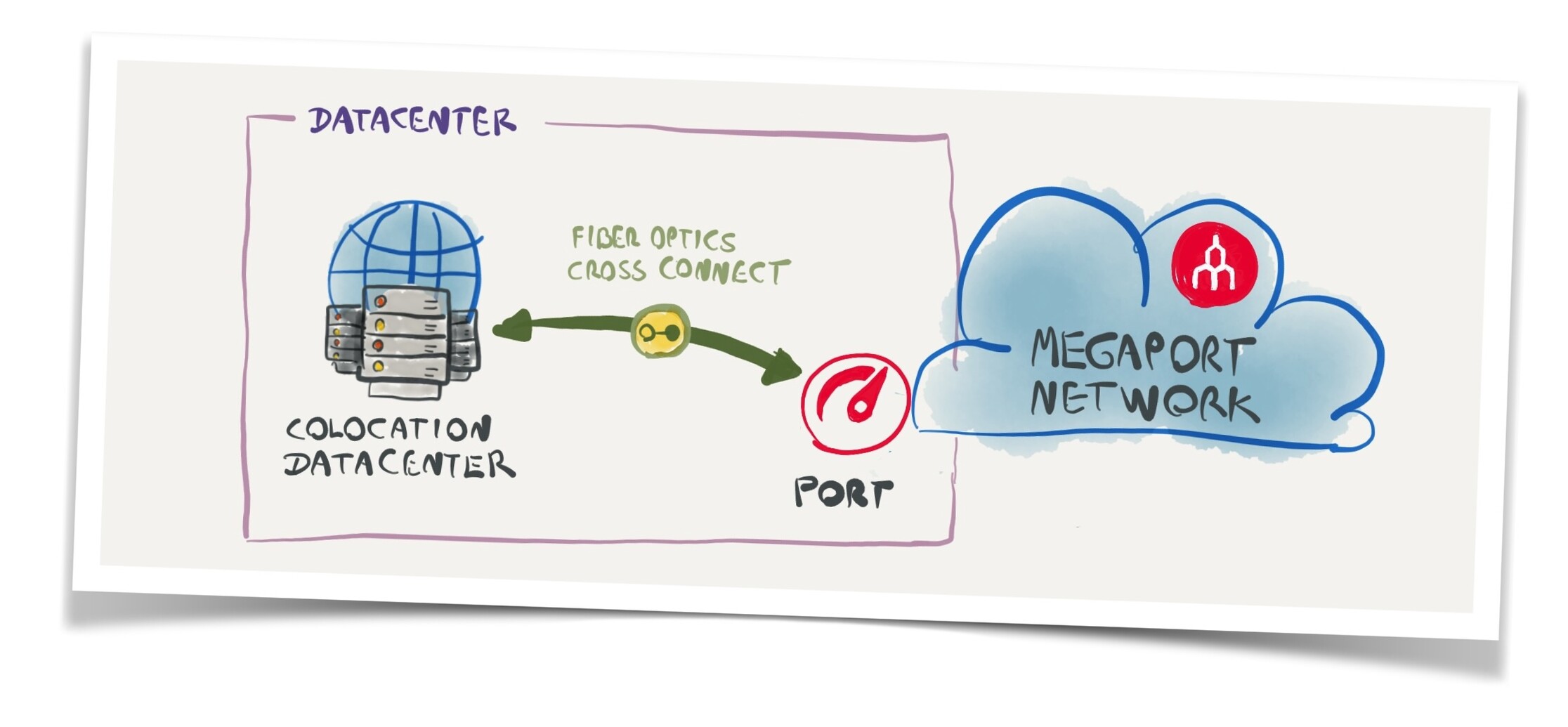 Cuando el equipamiento de un cliente de Megaport y el PoP de Megaport se encuentran en el mismo DataCenter la interconexión de ambas infraestructuras suele hacerse a través de un Cross-Connect óptico en la MMR (Meet Me Room) del DataCenter por lo que, como decía más arriba, se puede realizar con un par de latiguillos de fibra conectando un puerto A con un puerto B dentro de una misma sala de interconexión de red.